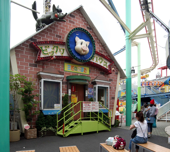 爲慶祝古稀之年過山車上塗滿了紅色,車身上寫著[祝•還曆]的字樣。 淺草花屋敷遊樂園裏最具曆史的遊樂設施是驚魂屋。 令人懷念的旋轉木馬深受攜家人前來的遊客們的喜愛。 令人眷戀的打靶場 遊樂園裏有一個廟會角,在有廟會的日子一定會有打靶場,那些第一次體驗打靶遊戲的小朋友們,很快就玩得入了迷。 大人或一家出行的人們,也很興致勃勃地玩著各種出現在昔日廟會上的遊戲節目。 花舞台在花舞台上,經常舉辦舞蹈和演劇、以及職業摔跤等各種活動,到訪者中還有不少拖家帶口的海外遊客。 爲慶祝古稀之年過山車上塗滿了紅色,車身上寫著[祝•還曆]的字樣。