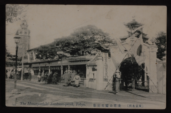 在花屋敷游乐园入口右侧的远处可以看到奥山阁、左侧的远处可以看到凌云阁。(明治中期,台东区立下町风俗资料馆收藏) 那时的花屋敷游乐园,同时也是上流社会用来交往的地方。从照片上也能看得出那里曾经是一个充满现代主义情结的交流场所。