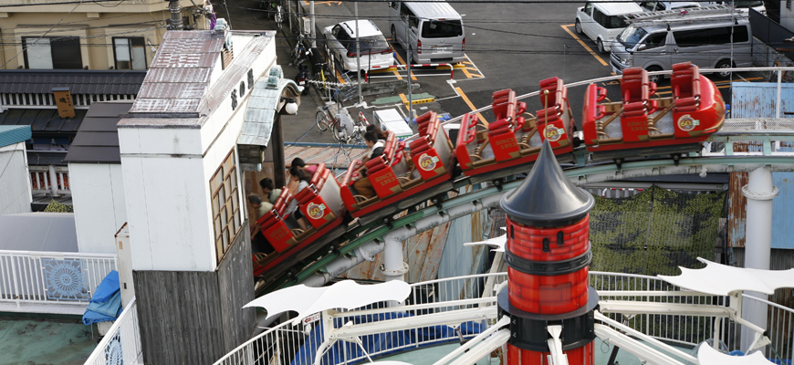 Asakusa Hanayashiki is the oldest amusement park in Japan, which was opened in 1853 in Asakusa, a center of entertainment. The park was founded by Rokusaburo Morita, a garden designer, as "Hanayashiki," a botanical garden in which peonies and chrysanthemum crafts were displayed. Hanayashiki, located at Okuyama in the rear of Senso-ji Temple, was crowded with people, including visitors to the temple since the Edo Period. In the Meiji Period, the precincts of Senso-ji Temple was developed as Asakusa Park, and the grounds of Hanayashiki were also reduced. Flowers and animals were on exhibit in Hana-yashiki from the Taisho to early Showa Periods, so it was the origin of zoological gardens in Japan. Now, Hanayashiki, which has been renamed as "Asakusa Hanayashiki," is crowded with people who enjoy attractions, including the 60-year-old roller coaster that is the oldest one in Japan and the Bee Tower that gives a sweeping view over Asakusa. (2-28-1 Asakusa, Taito City)