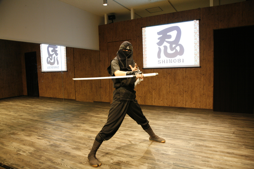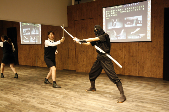 Visitors can get experience of "Ninjutsu," or skills of stealth and secrecy practiced by Ninja, in "Hanayashiki-ryu Nina Taiken Dojo," an exercise hall.