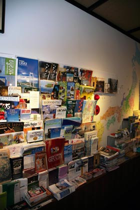 日本各地の旅行ガイド。その多くが日本語の他、英語等の多言語での紹介となっています。地方に出掛ける旅行客には、その土地の旅館等を案内する事もあるとの事でした。