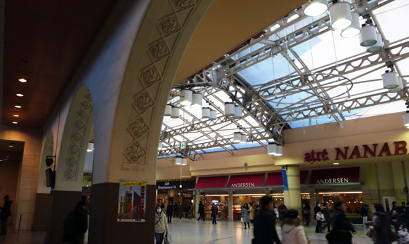 廣場兩側設立的購物商場、美食街等等複合設施,增添了車站內的熱鬧氣氛