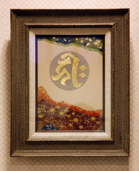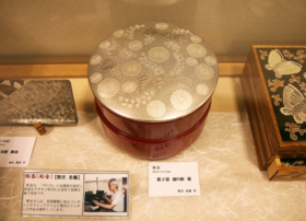 這是金銀箔粉工藝品,本來日式拉門上的花紋等是用金銀箔粉描畫出來的,現在人們幾乎都不用了,最近用來制作壁挂等工藝品。