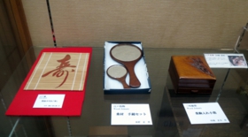 江戸すだれ(田中 耕太朗)、江戸指物・手鏡セット(木村 正)、三味線箱・桑駒入れ小箱(中西 正夫)