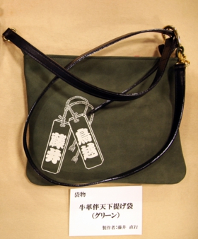 これは牛革の袋物ですね。他にも革を重ねて作る合切袋があります。合切袋は、元々は煙草入れなどとして作られていました。