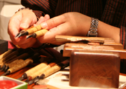 首先,不同的木頭其硬度和形狀也都會各不相同,最重要的是木頭的紋理完全不同,木頭的手感非常好,它會逐漸呈現出豔麗的顔色木質也越來越好,小枝遊印舉世無雙,因為每一個都是手工制作,不會作出完全相同的形狀或圖案的。雖然材料堅硬,雕刻起來並不容易,但是雕刻圖案比其單純刻字,有意思多了。一般的印章,圓形的大小都是有固定尺寸的,現在都是用機器雕刻,用機器刻的印章就沒有多大意思了,因為每個都是一模一樣的。