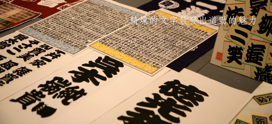 以前的活字現在變成了字體,在計算機上有各種各樣現成的美術字體,但還是手寫的字顯得有力度,或者說醒目和給人的印象深刻。在使用文字的各種場合中、如歌舞伎使用的勘亭流字體、相撲使用的角力字體、單口相聲使用的曲藝字體等,這些在江戶庶民文化中産生,又在百姓中得以發展的各種各樣的字體,使人能夠感受到它在表現手法上的魅力。