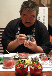 在風鈴內側畫畫,是件非常精細的工作,顯示了手藝人的非凡技藝。