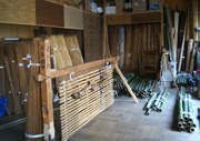 People who wove bamboo gathered in places where bamboo, that is, material for bamboo blinds, could be obtained. In such places, people split bamboo and made bamboo blinds. Bamboo blinds were also made in consuming regions. For example, although it is no longer the case, Osaka, Nagoya and Kyoto were famous as places where bamboo blinds were consumed. Bamboo blind craftsmen also exited in those places, and laid in a stock of bamboo from neighboring areas. Tokyo is not a place where a lot of bamboo can be obtained, so craftsmen in Tokyo get bamboo from suburbs. I think craftsmen also did so in the Edo Period.