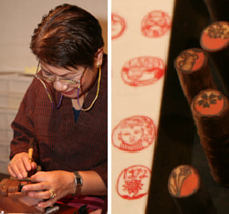 그리고 외국에 계신 분들도 선물용으로 많이 주문하는데 상대편 이름을 새겨서 선물하는 경우가 많아요. 나무 질감도 외국 분한테 인기가 좋아요. 가령 벚나무 라든지.전에는 체험교실에 미국사람이나 프랑스사람이 참가해서 자신의 이름 한 글자를 한자로 바꾸고는 무척 기뻐하면서 도장을 만들어갔어요. 체험교실에 오시는 손님도 많아요.