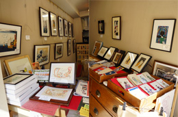 나가오씨의 작업장에서는 인쇄사, 조각사가 마주보고 작업을 하고 있습니다.