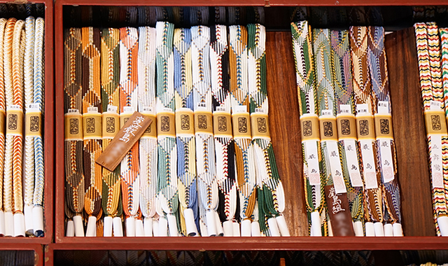 Domyo: Our company was established in the early Edo Period, and since Kumihimo was introduced into Japan along with Buddhism, so it was originally used for Buddhist ceremonies. In the Heian Period, it began to be used for costumes for nobles, and for "Oyoroi," an armor, at the end of the Heian Period.