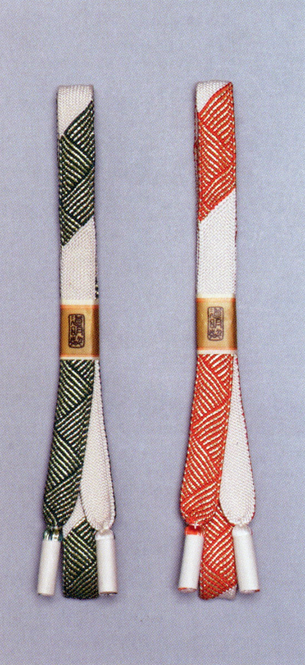 Kumihimo began to be used as sash bands since the end of the Meiji Period. Before that, it was used for sword straps. I think gold threads began to be inserted into Kumihimo after women started to use it as sash bands.
