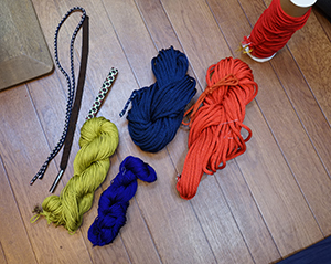 A company that has made Sanadahimo is located in Tokyo, so we buy in a stock of it from the company. Sanadahimo is a fabric of which warp and weft are woven by a loom, so it is not Kumihimo.