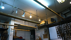 Q : 仕事場の天井に通されている竿竹は、どのように使われているのですか。