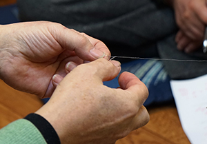 参加しています。例えば、うちでも年に何回か修学旅行の生徒さんをボランティアで受け入れたりもしています。この工房では、5、6人程しか入りませんから、ちょこちょこと小さなものを組んでもらっています。中学生の方が多いので、それをストラップにしてあげたりしています。