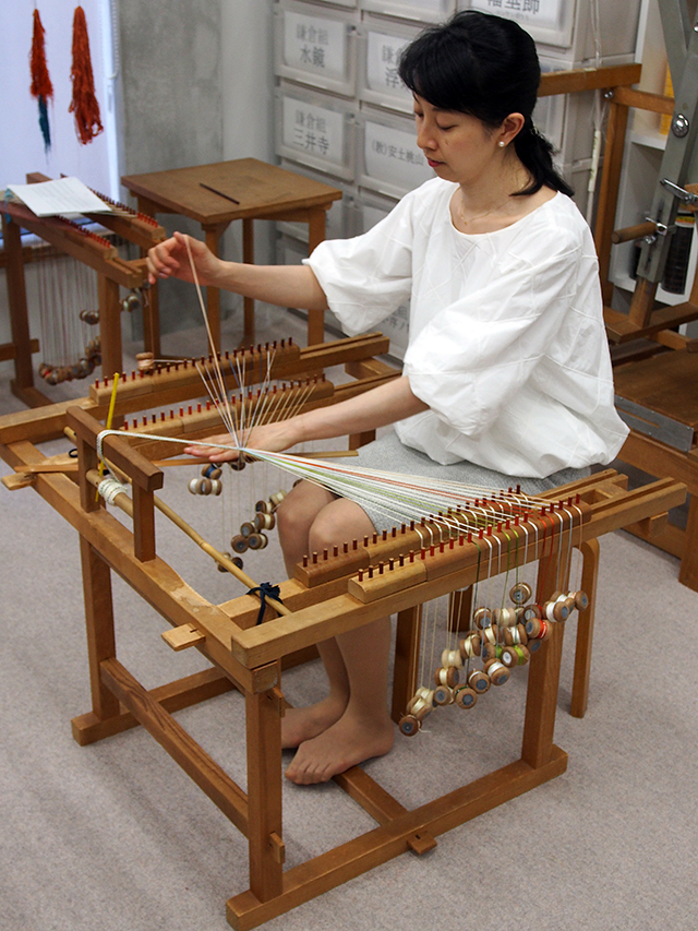 有職組紐道明では、古来の組紐の伝承と復興と共に現代にも通じる新たな組紐作品を生み出しています。また道明組紐教室(道明古式糸組法教處)を開催し、伝統技法の伝承と共に技術者養成にも努めています。(台東区上野2丁目11番1号)