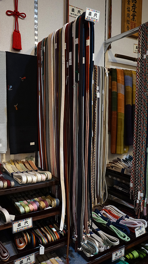메이지, 다이쇼, 쇼와, 그리고 헤세이로 시대는 변천했지만, 스모 선수 등의 기모노와 일본 전통복에 대한 수요와 함께 하오리히모나 띠, 손주머니, 일본도 등의 전통 소품도 주문은 끊이지 않습니다. 최근 해외에서 새로운 자포니즘의 유행과 함께 일본의 전통기술이나 기법도 다시 주목받고 있습니다. 특히 일본 고유의 생활에 뿌리내린 기술과 용구에도 관심이 커지고 있습니다. (하단에 계속)