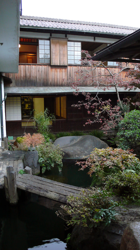 Rocks representing the five Confucian precepts benevolence, justice, propriety, wisdom and fidelity are placed in the Goten-no Suitei water-garden. The teahouse-style, Japanese building facing the garden has a Western-style drawing room, where guests from overseas were entertained, and Japanese-style tearoom and Asakura's room, creating a harmonious atmosphere in which Japanese and Western elements coexist. In the garden, a red-flowered crape myrtle is planted among white-flowered plants.