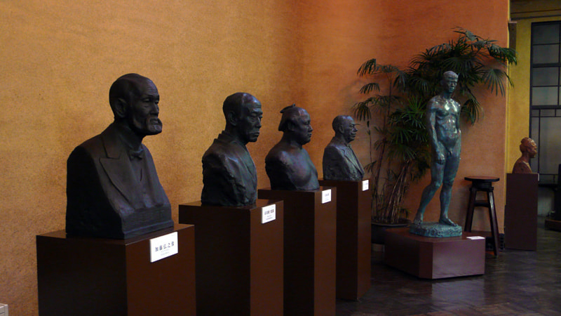 아틀리에에는 대표작인「하카모리」(묘지기)를 비롯하여「토키노 나가레」(시간의 흐름) 및「산소」(삼상) 외에 ‘오오쿠마 시게노부’, ‘9대 단쥬로’, ‘후타바야마’등, 당시 저명 인사의 동상이 전시되어 있어 그의 작풍과 함께 교류의 넓음을 느낄 수 있습니다.
