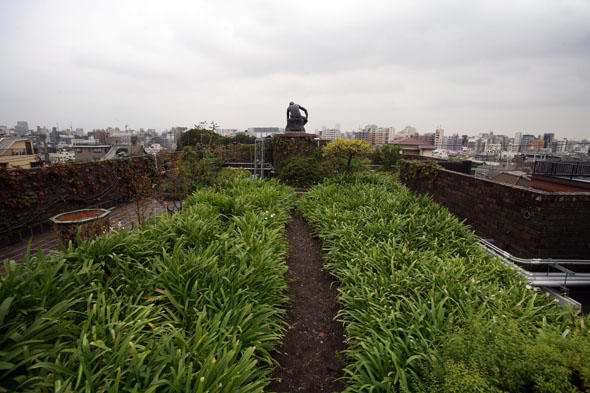在屋顶庭园上能够眺望谷中,就像是生养过朝仓文夫的大分县的大自然一样,在这里能够令人暂时忘记这里是在大都会的闹市之中。置身其中仿佛能够看到正在种蔬菜、养兰花、和爱猫嬉戏的朝仓文夫的样子。