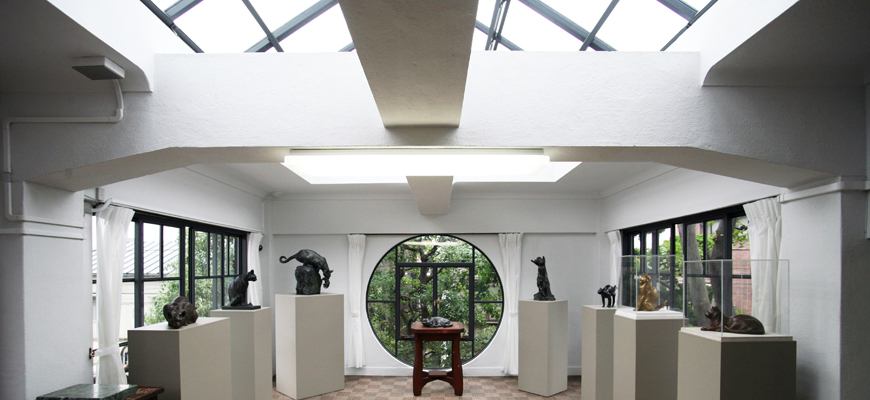 Fumio Asakura was born in Oita Prefecture, and studied at Tokyo Fine Arts School (present Tokyo University of the Arts). He was highly evaluated as a sculptor even in his school days, and left behind many sculptures. After his death in 1964, the building was opened to the public as the Asakura Museum of Sculpture in 1967 in accordance with his wishes. In 1986, the control of the museum was transferred to Taito City and renamed "Taito City Asakura Museum of Sculpture, Taito." The museum is based on the distinctive building that was founded with Sculptor Fumio Asakura's ingenuity. The essence of his ingenuity was revealed at the time of the "Restoration and Renovation of Former Fumio Asakura's Garden" that was started from 2009. (continued in the lower column)