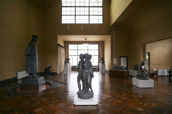 "Grave Keeper" (1910), one of his masterpieces, is placed at the entrance of the studio as if it protects the museum. Other masterpieces, including "Statue of Shigenobu Okuma" (1932), of which duplication is placed on the grounds of Waseda University, and "Three Phases" (1950), of which duplication is placed in Ueno Station, are also exhibited.
