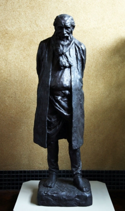アトリエ入口には、彫塑館を守るように代表作「墓守」(明治43年(1910))が配され、大隈重信像(昭和7年(1932)、早稲田大学構内に設置)、知・情・意を表した「三相」(昭和25年(1950)、JR上野駅構内にも設置)等の代表作品が展示されています。