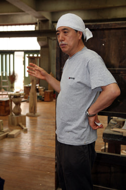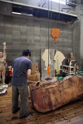 學生們能夠從早晨到夜晚都專心進行自己的創作,現在,把喜歡把自己感興趣的主題用木頭制作出來的學生增多了。在教學上,先讓學生自己去思考,然後討論他思考的東西是否有意義,從而激勵學生。如果只是抄襲從前的東西,當想做新的事情就會不知如何下手,讓他們每個人自己去思考,看自己的雕刻觀是否符合時代,是否能包含有深度的思想。另外,在素材選擇上,使用最容易雕刻的,也比較容易到手的日本國産樟木。(下段繼續)