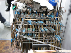 各種各樣形狀的錘子和金屬塊的數量之多令人感歎。