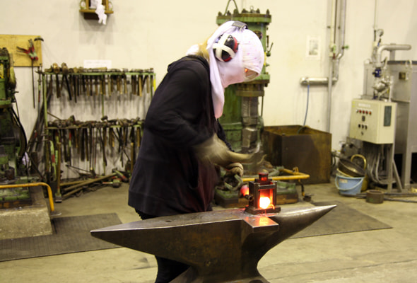 現在學生的半數以上都是女學生,盡管是象鍛造這樣的體力勞動和要使用各種金屬加工工具進行作業,仍然有女性學生的加入。(下段繼續)