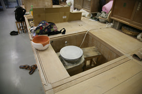 听深井教授说,学生的作品没有固定要求,可以任意作自己喜欢的东西。硕士研究生有毕业作品展,作品展示在大学美术馆和这个工作室里,因为在大学美术馆里展示雕刻作品的空间比较狭窄,作品在制作时限定于一个房间内能够放得进去的尺度,用一年的时间去制作完成。那些大到房间内都摆不进去的作品,只好展示在室外和大学美术馆前。学生们虽属于不同的研究室,但是工作室不分你我可以共同使用。深井老师的专业是木雕,在他的研究室里,有从本科3年级到博士生,石雕和金属的研究室也是一样的情况。但是在塑像专业情况略有不同,硕士研究生和本科生在不同的房间进行创作,2年级后期课程开始有选择实习课,有7成的学生使用的是规定素材。在日本,从素材上定向的比例比较高,已经形成了这样的一个教育体系。 (下段继续)