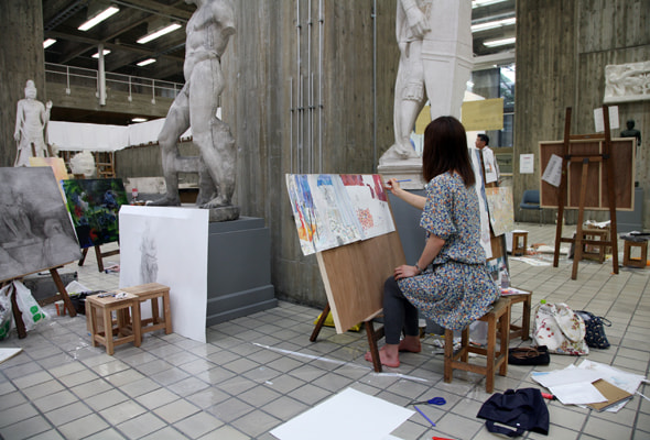 In the quiet plaster figure room, only the faint sound of applying brush strokes to canvases could be heard.