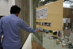 Professor Sakaguchi said that students tackle a task called "Artistic Expressions related to Ordinary-Extraordinary and Continuity-Discontinuity," in which they deduce themes from familiar, everyday events and personal experiences while recognizing new trends in the world. Students took a field trip to Tokyo Sky Tree, located east of Tokyo University of the Arts, using Taito City's community bus "Megurin," and purchased intriguing objects at Kappabashi Dougu Street. Then, they visited Sumidagawa Park, placed those objects in the park and took pictures of the objects against Tokyo Sky Tree under construction, and also gathered information about the surrounding area. The following week, they went to Koishikawa Botanical Garden, located west of the university, and received explanations about how the garden staff have grown and studied trees in the world, including a tree that was grafted from the apple tree under which Isaac Newton made his discovery of the principle of gravity. In this way, after gathering information about what have been happening in the eastern and western sides of Tokyo University of the Arts, students think about how to figure out ordinary and extraordinary, and express those in their own ways. For example, one of animation works is made frame by frame, and scenes in a train, which are depicted by two students, are added to it. A variety of expressions, including videos, three-dimensional works and paintings, are created, and critiques are conducted while displaying their works. The point is that how students view extraordinary. Although modernization has been advanced by putting together extraordinary and separating it from ordinary since the Meiji Period, it is necessary for each student to reconfirm that extraordinary is situated nearby if regarding people's dreams and past customs as extraordinary.(continued in the lower column)