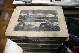 リトグラフに用いられる重く大きなリトストーン(石灰石の石版)が、工房には積まれていました。