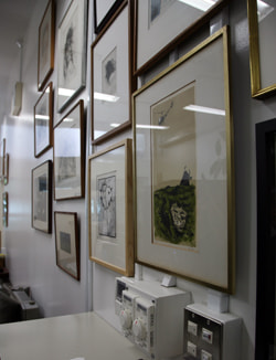 版画研究室には先生の作品の他、版画研究室に関わりの深い小磯 良平、野見山 暁治、小野 忠重、加山 又造、杉全 直、小松崎 邦雄、脇田 和、岡部 徳三の版画作品、そして池田 満寿夫、オディロン・ルドンの作品も掛けられていました。