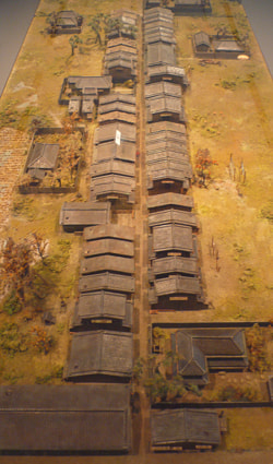 이치요가 이사한 당시인 1893년경의 시타야 류센지마치 다이온지 거리(현 차야마치 거리), 중앙의 흰색 표시 부근이 이치요 자택. 이 거리의 앞쪽에는 미시마 신사, 거리의 뒤쪽에는 신요시와라로 이어지는 도개교(성곽 등에 평소에는 매달아 두고 유사시에만 걸치는 다리)가 있었습니다. (고증 우에시마 킨타로 / 시오타 료헤이 / 와다 요시에)