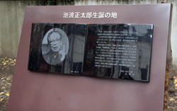 A monument was built in 2007 at Ikenami's birthplace, Asakusa Shoden-cho, Taito City (old address: 61 Shoden-cho, Asakusa Ward, Tokyo City). His home was located on the south side (around the address of 7-3 Asakusa, Taito City) of Matsuchiyama Shoden Temple, but destroyed during the Great Kanto Earthquake.