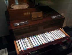 애용품이었던 음악 카세트에는 프레드 아스테어나 카라얀의 이름도 보여, 대단히 모던했던 생활을 엿볼 수 있습니다. 또한, 생애 동안 스승으로 모신 하세가와 신에게 받은 담뱃갑, 담뱃대나 파이프 등도 있어, 애연가로서의 면모도 보입니다.
