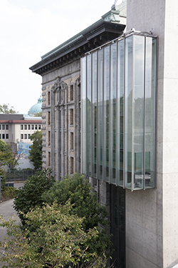 The building of the former Imperial Library did not meet the current earthquake standards, so some measures for base isolation had to be implemented. Base-isolating devices, including a retrofit method, in which a base-isolating device is placed under the building, was implemented. First, those repairs were conducted in 2000.