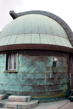 在入口旁有[贰拾糎(20厘米)赤道仪,设计制作及安装 日本光学工业株式会社(略),昭和六年十月竣工],[赤道仪室,水户市由中村千代松氏捐赠]的两个标示牌。在天文台的周围有像是前来观览的孩子们乱写乱画留下的痕迹,从幼稚的字体中能够读出昭和21年,1950年等年号和名字。