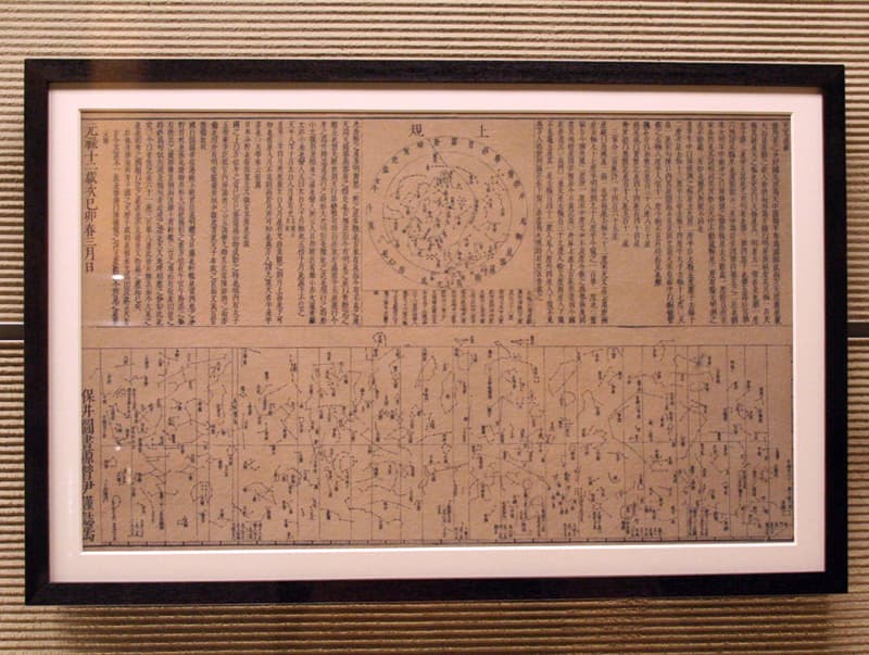 타카모리 칸코(1750-1830)가 그린, 은하수도 그려진 특유의 색채에 의한 별자리 그림. 칸코는 기구 제작에 능하여 팔분의, 상한의(사분의), 온도계, 천문 시계 등의 많은 과학 기계를 남겼습니다. 히라가 겐나이가 수리 제작한 ‘에레키테루(수동 마찰 발전 장치)’등도, 독자적으로 제작했다고 전해집니다.