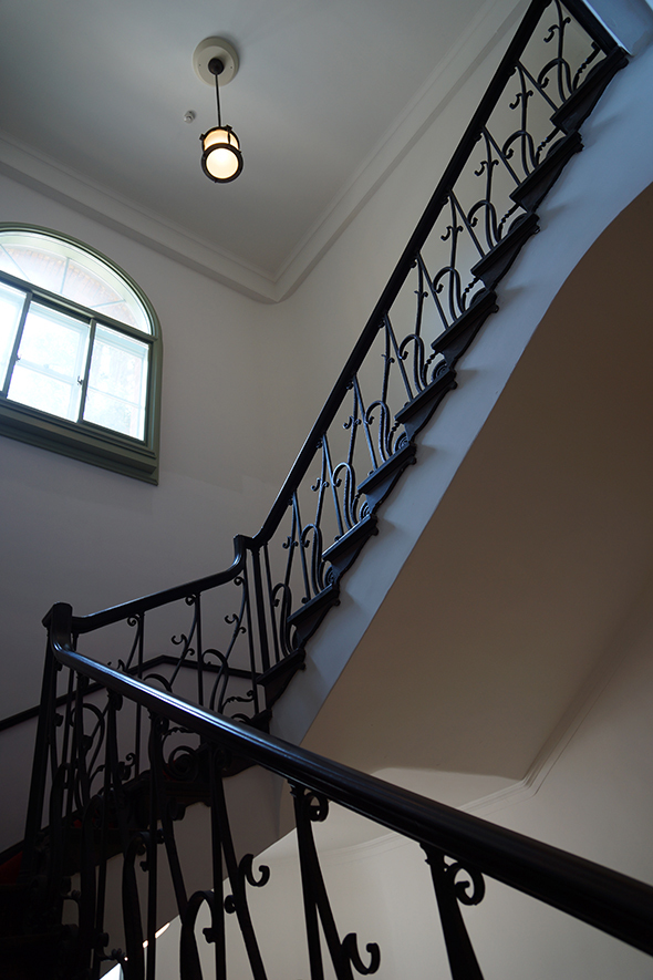 樓梯扶手采用了新藝術風格(ART NOUVEAU)的裝飾,是由後來成爲東京美術學校教授的金沢庸治(1900-1982)設計的。