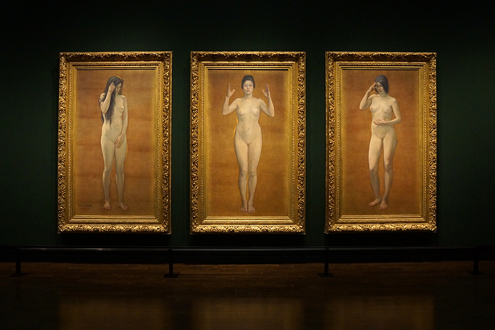 A nude triptych submitted to the 2nd Hakuba-kai Exhibition. This painting was exhibited in the 2nd Hakuba-kai Exhibition in 1897, and stirred controversy as with the exhibition of "Morning Toilette" that was created in France. It was also submitted to the International Exposition held in Paris in 1900 with the title "Etudes de Femmes," and awarded a silver prize.
