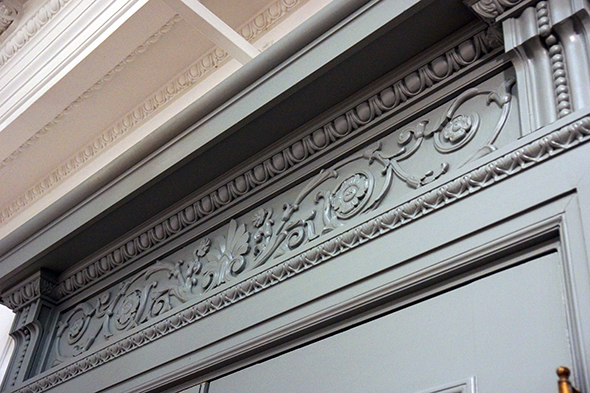 Sophisticated ornaments are arranged on the skylight windows of the memorial room.