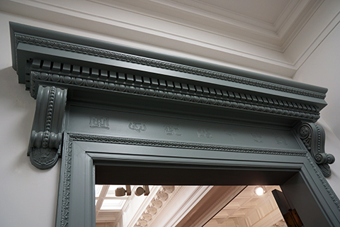 記念室の鴨居には、華麗なオーナメント(装飾)が見えます。