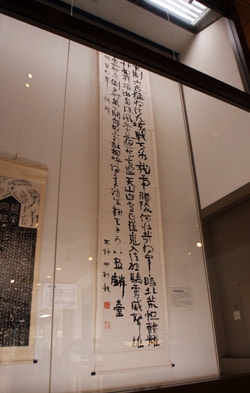 中村不折紀念館一層的第一展示廳的大型展示櫃裏,展示著豎長型的作品。