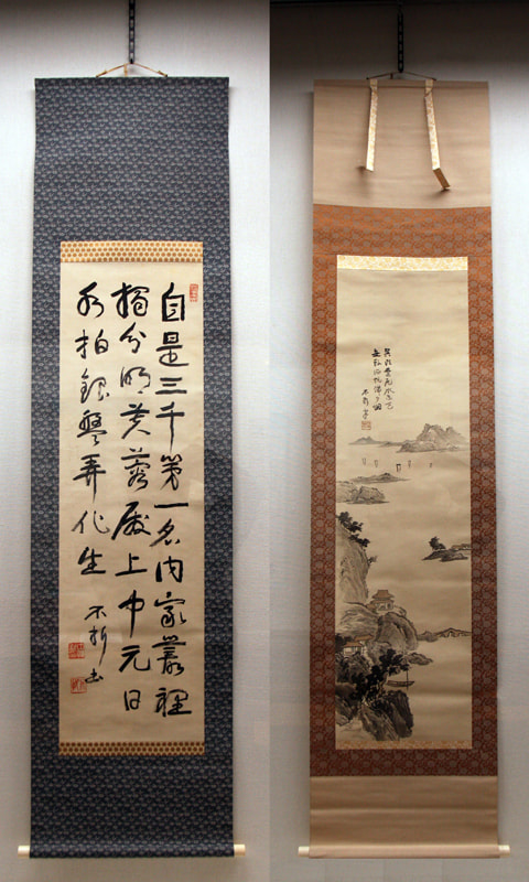 In the first exhibition room on the first floor of Fusetsu Nakamura Memorial Hall, Fusetsu Nakamura's calligraphy on a very long scrol witch is exhibited.