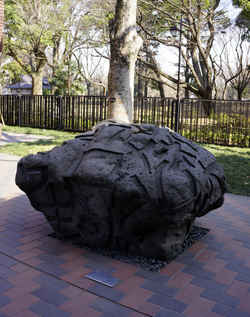 The large metal sphere created by Bukichi Inoue, which is exhibited at the "esplanade" stretching from the museum's main gate, is the symbol of the museum. Visitors almost always look down into the hole excavated in the shining sphere. Another Bukichi Inoue's work, "my sky hole 91 tokyo," which is a large arch-shaped red sculpture, is placed in the square in front of the Tokyo Metropolitan Government Office. The work is also the symbol of the Tokyo Metropolitan Government.