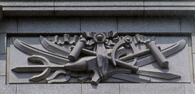 建築外立面的上部,有制圖工具和樂器為主題的裝飾。
